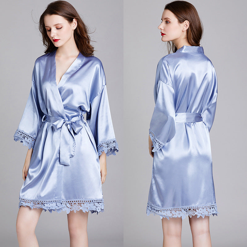 Long Sleeve Large Size Silk Ice Silk Home Nightgown